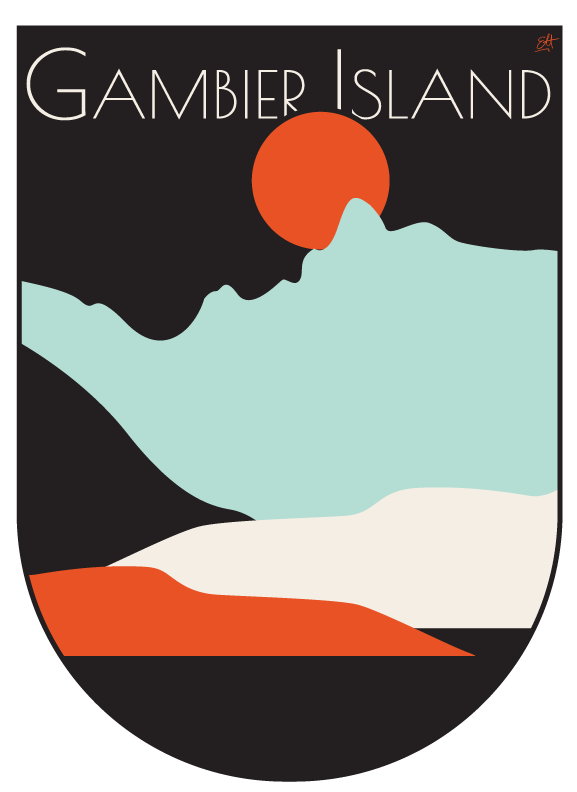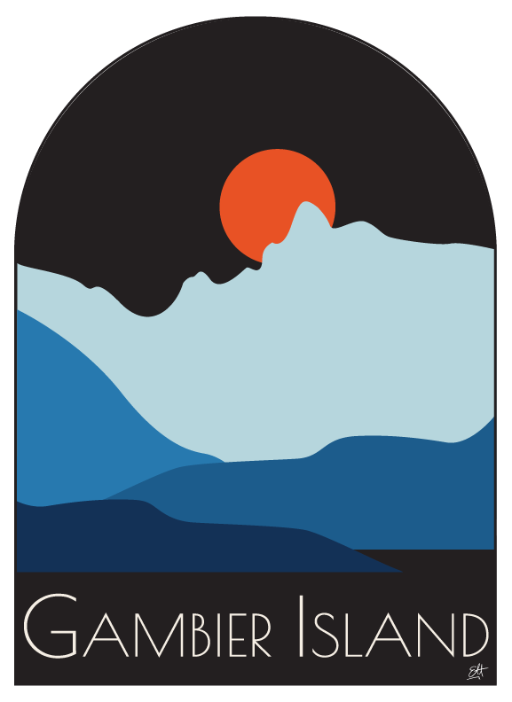 My t-shirt design was inspired by the iconic view of the Howe Sound mountains from the part of Gambier Island where I grew up. I aimed to capture the many hues of blue that fade with each finger of land in the distance. In winter, this view is especially striking as the Howe Sound Crest and its mountains are dusted with snow. This scene is nearly impossible to overlook while in the sound, and I knew it would be instantly recognizable to fellow islanders.